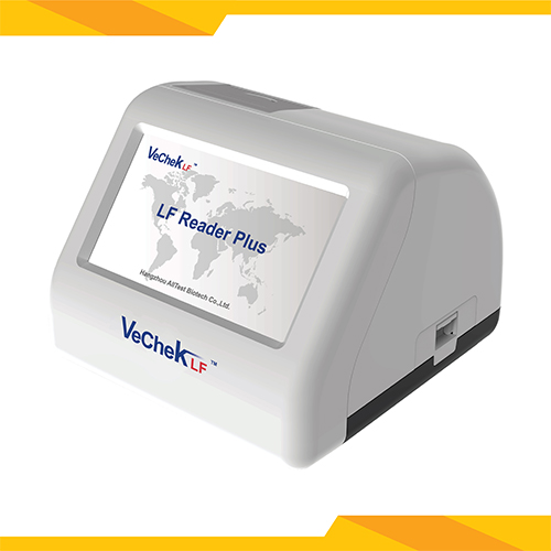 Lateral Flow (LF) Reader Plus is designed to provide digital test results for Rapid Tests units based on Lateral Flow Immunoassay. The reader can be used for qualitative, semi-quantitative and quantitative analysis. Lateral Flow (LF) Reader Plus uses a high-resolution camera to capture images of the test strip reflected on the object being tested, and the software algorithms automatically determine the test results and display them on the touch screen. The test results can be printed using the built-in thermal printer and the reader has the advantages of high precision and high speed.